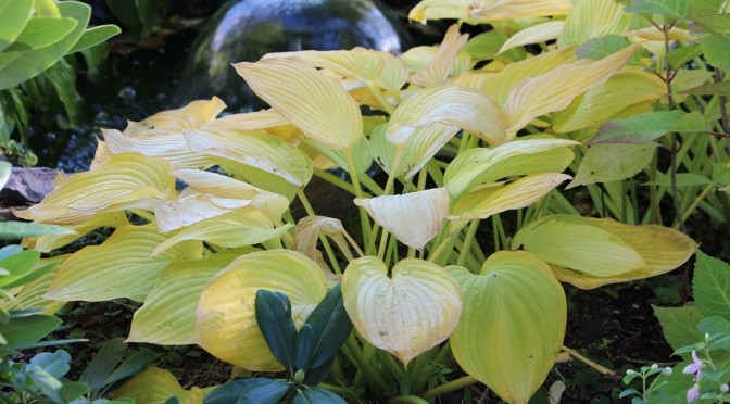 Ja kuunliljan lehdet kellastuvat usein todella kauniisti, kuten kuvassa näkyy. Ei ole mikään kiire leikata perennojen lehtiä, vaan niiden kauneudesta kannattaa nauttia : )