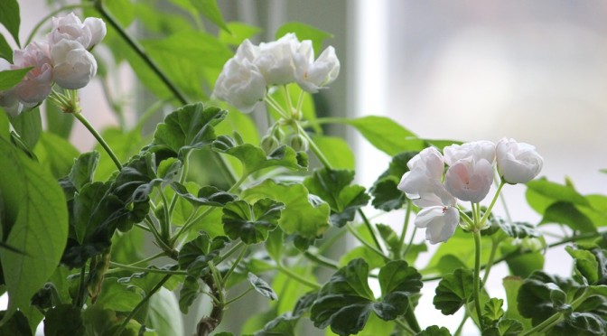 Pelargonit kukkivat vieläkin sisällä. Ne on kyllä niin ihania ja helppoja talvetettavia.